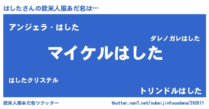 | 男性向けラノベタイトル風あだ名 | 『ハシタアートオンライン』 |