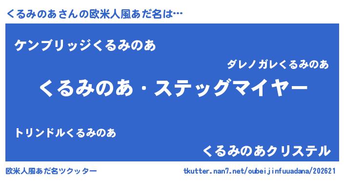 | 男性向けラノベタイトル風あだ名 | 『うちのくるみのあが世界を掌握している!』 |