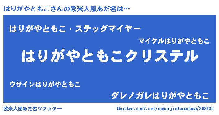 | 肩書あだ名 | 『はりがやともこ大統領』 |