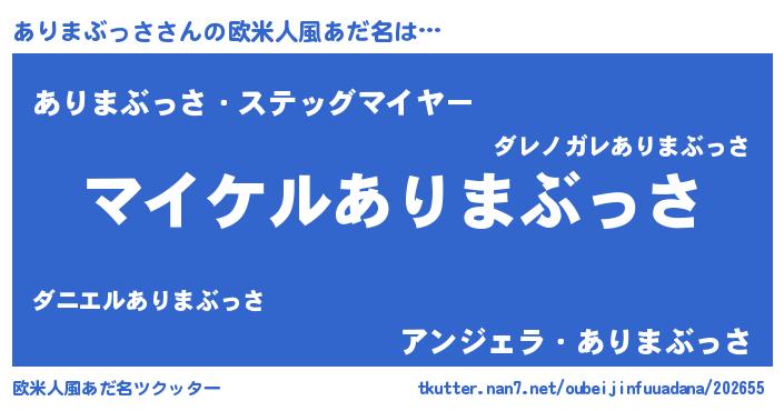 | 男性向けラノベタイトル風あだ名 | 『アリマブッサアートオンライン』 |