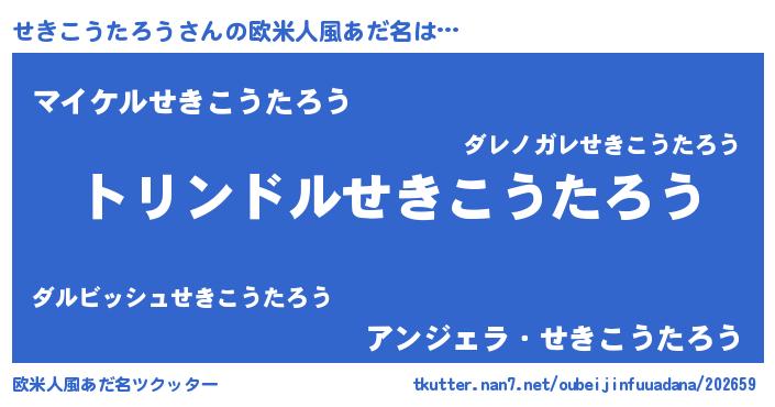 | 男性向けラノベタイトル風あだ名 | 『せきこうたろう~年齢イコール彼女いない歴の魔法使い~』 |