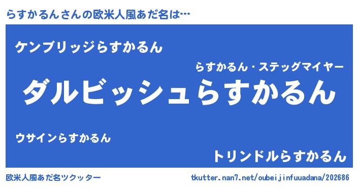 | 男性向けラノベタイトル風あだ名 | 『らすかるんという概念が存在しない退屈な世界 』 |