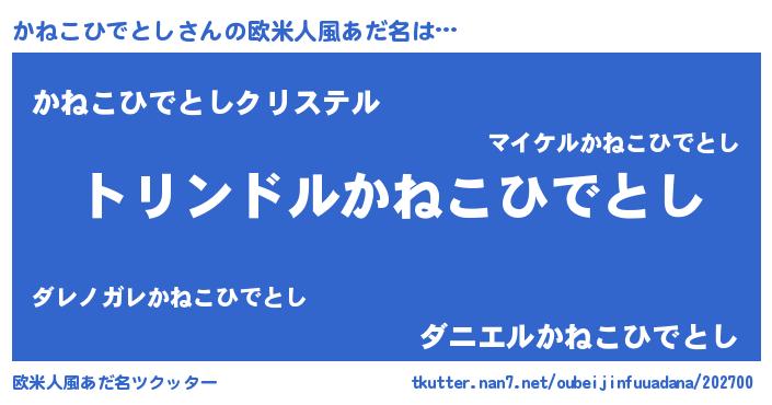| 女子向けラノベタイトル風あだ名 | 『かねこひでとしの玉の輿計画!』 |