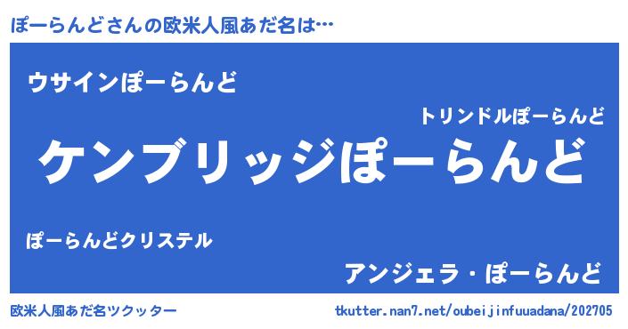 | 意味不明あだ名 | 『自称ぽーらんど』『ニラ科ぽーらんど属』 |