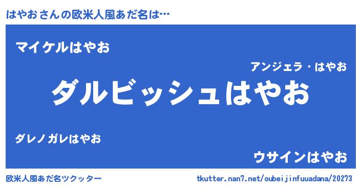 | 男性向けラノベタイトル風あだ名 | 『はやおという概念が存在しない退屈な世界 』 |