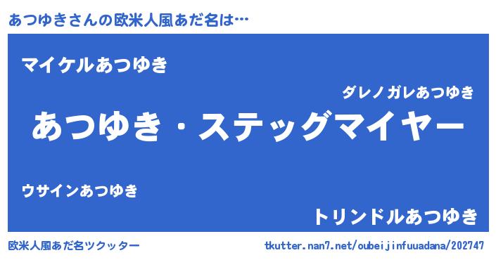 | 男性向けラノベタイトル風あだ名 | 『うちのあつゆきが世界を掌握している!』 |