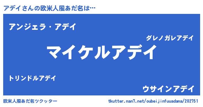 | 男性向けラノベタイトル風あだ名 | 『アデイの憂鬱』 |
