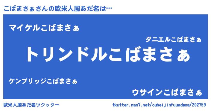 | 女子向けラノベタイトル風あだ名 | 『こばまさぁの玉の輿計画!』 |