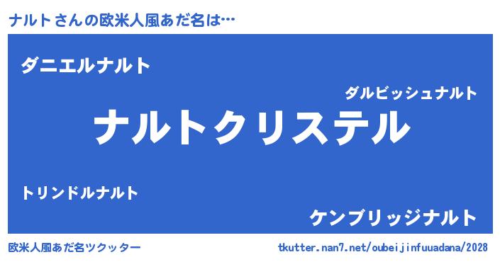 | 女子向けラノベタイトル風あだ名 | 『ナルトの雑貨屋さん』 |