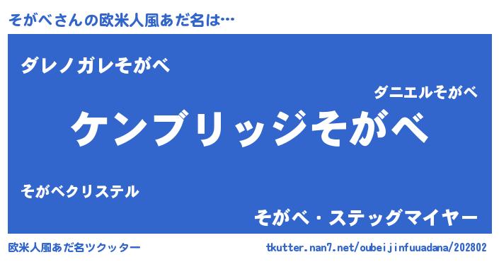 | 男性向けラノベタイトル風あだ名 | 『Re:そがべから始める異世界生活』 |