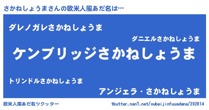 | 男性向けラノベタイトル風あだ名 | 『Re:さかねしょうまから始める異世界生活』 |