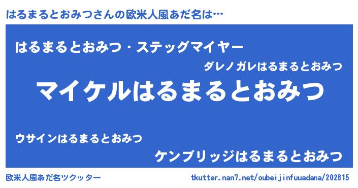 | 男性向けラノベタイトル風あだ名 | 『ハルマルトオミツアートオンライン』 |