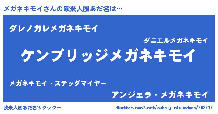 | 意味不明あだ名 | 『自称メガネキモイ』 |