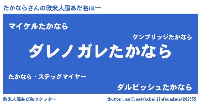 | ヒーロー風カッコイイあだ名 | 『仮面タカダー』『スーパータカナラ』 |
