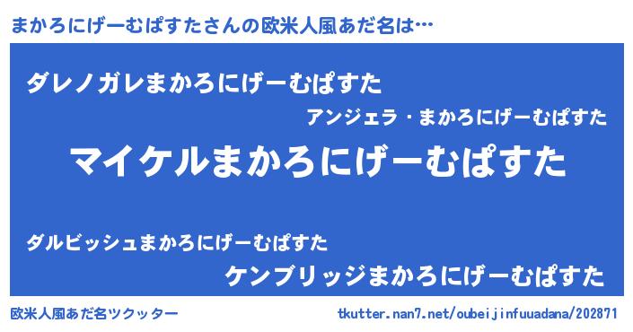 | 男性向けラノベタイトル風あだ名 | 『まかろにげーむぱすたの憂鬱』 |
