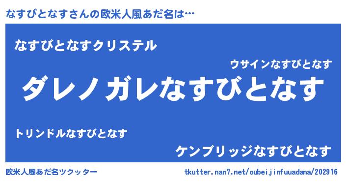 | 男性向けラノベタイトル風あだ名 | 『魔弾の王となすびとなす』 |