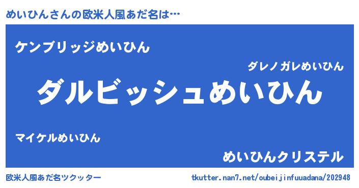 | ヘコむあだ名 | 『めいひん(震え声)』『豆乳』 |
