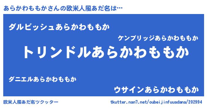| ヘコむあだ名 | 『あらかわももか(笑)』『あらお』 |