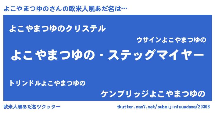 | 男性向けラノベタイトル風あだ名 | 『緋弾のヨコヤマツユノ』 |