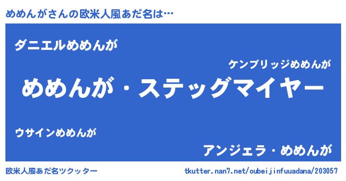 | 男性向けラノベタイトル風あだ名 | 『うちのめめんがが世界を掌握している!』 |