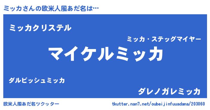 | ヒーロー風カッコイイあだ名 | 『スーパーミッカ』『ウルトラミッカマン』 |