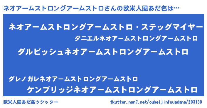 | 胡散臭い通販商品みたいなあだ名 | 『来世でも幸せになれる健康食品…その名も「ネオアームストロングアームストロ」』 |