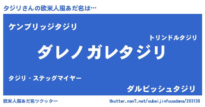 | 男性向けラノベタイトル風あだ名 | 『この素晴らしい世界にタジリを!』 |