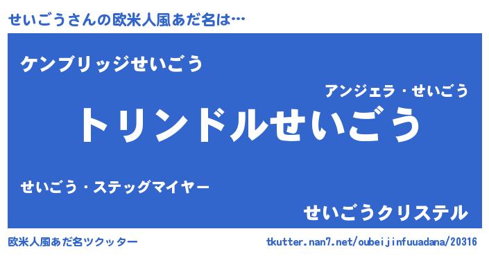 | ヒーロー風カッコイイあだ名 | 『究極戦士セイゴウ』『愛の使者せいごう』 |