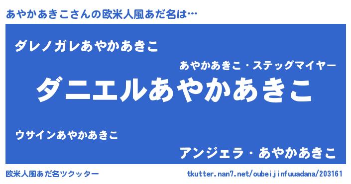 | 男性向けラノベタイトル風あだ名 | 『ノーゲーム・ノーアヤカアキコ』 |