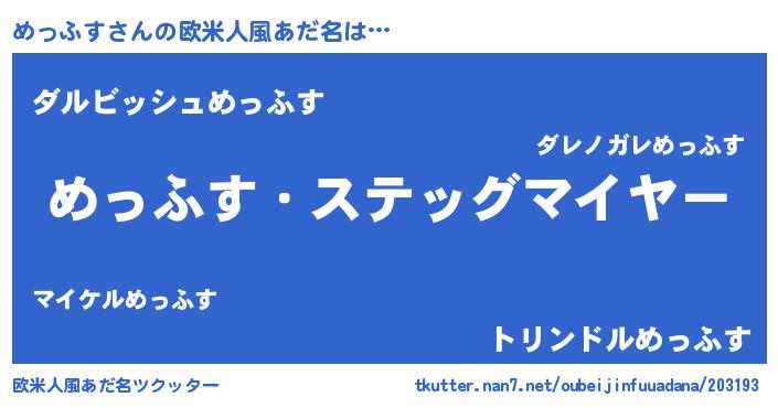 | 意味不明あだ名 | 『永久保存めっふす』『ペロリンめっふす』 |