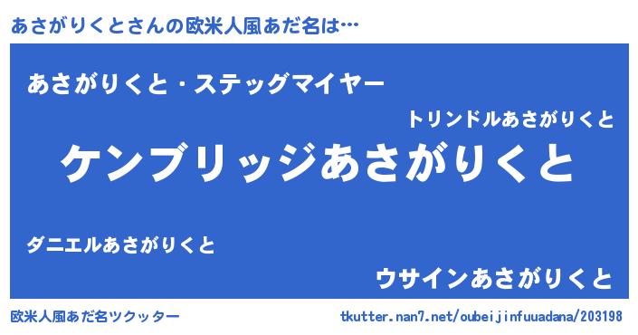 | 意味不明あだ名 | 『自称あさがりくと』 |