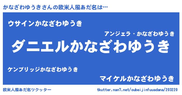 | 男性向けラノベタイトル風あだ名 | 『ノーゲーム・ノーカナザワユウキ』 |