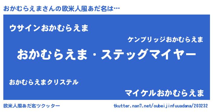 | ヒーロー風カッコイイあだ名 | 『暗黒騎士オカ』『スーパーオカムラエマ』 |