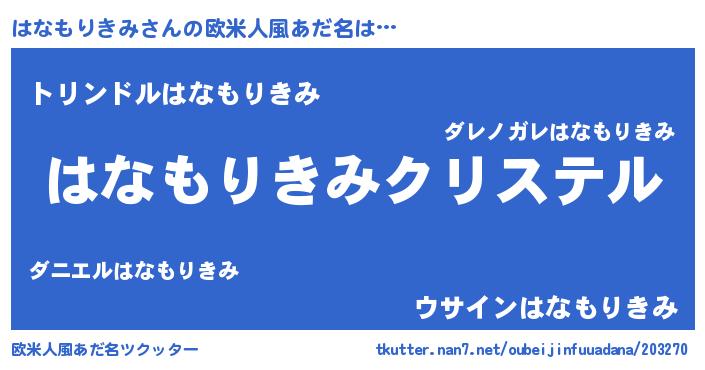 | 女子向けラノベタイトル風あだ名 | 『はなもりきみの雑貨屋さん』 |