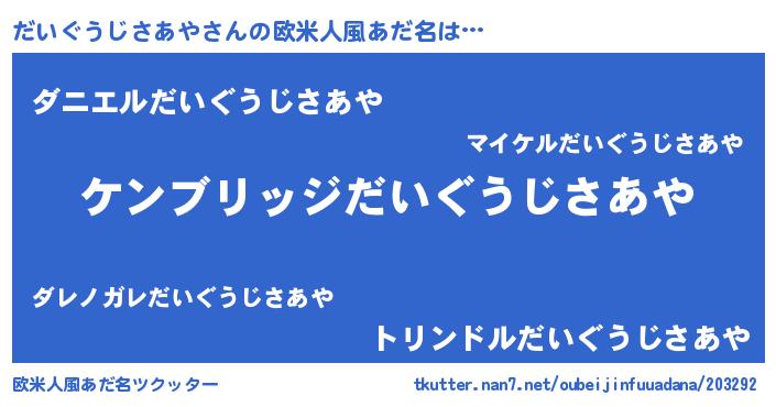 | 意味不明あだ名 | 『自称だいぐうじさあや』 |