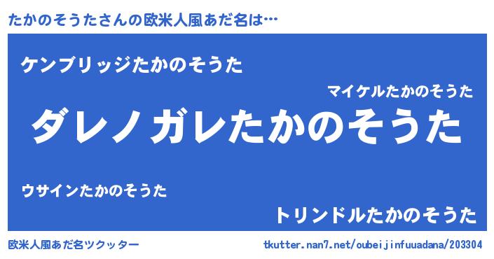 | 男性向けラノベタイトル風あだ名 | 『この素晴らしい世界にたかのそうたを!』 |