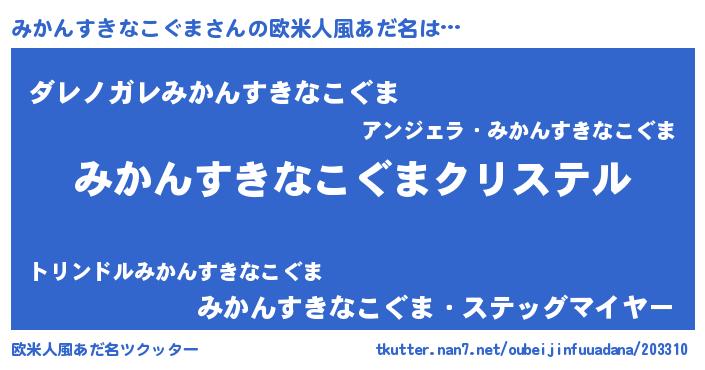 | 意味不明あだ名 | 『みかんすきなこぐまフォーエバー』 |