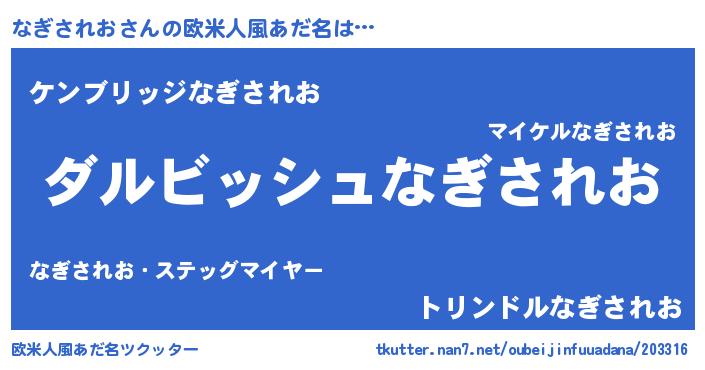 | ヘコむあだ名 | 『なぎされお(遠い目)』『なぎにー』 |