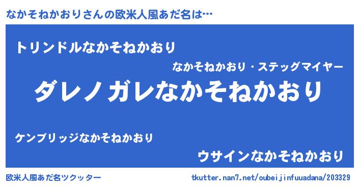 | 意味不明あだ名 | 『住所不定無職なかそねかおり(10歳)』 |