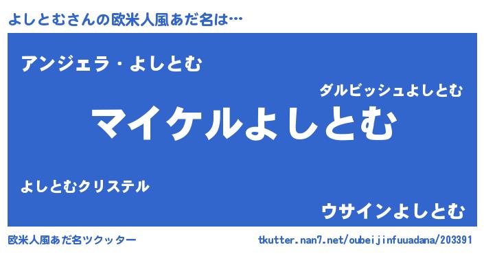 | 男性向けラノベタイトル風あだ名 | 『よしとむの憂鬱』 |