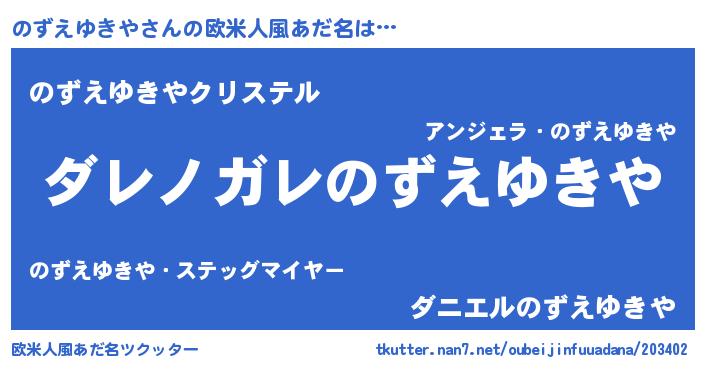 | 男性向けラノベタイトル風あだ名 | 『魔弾の王とのずえゆきや』 |