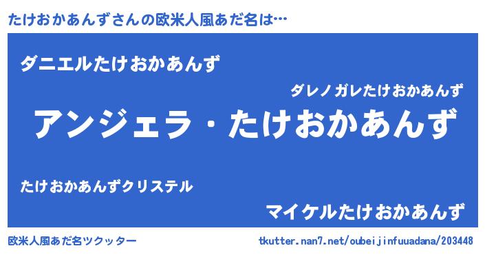 | 男性向けラノベタイトル風あだ名 | 『たけおかあんずに滅ぼされるだけの簡単なお仕事です』 |
