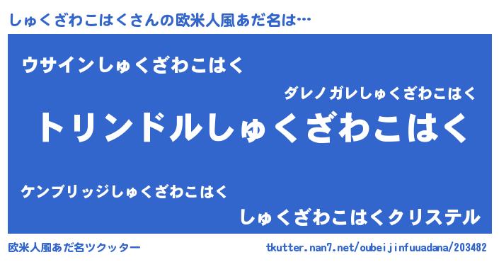 | 男性向けラノベタイトル風あだ名 | 『シュクザワコハクスレイヤー』 |
