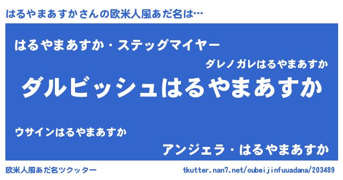 | 女子向けラノベタイトル風あだ名 | 『異世界で失敗しない100のはるやまあすか』 |