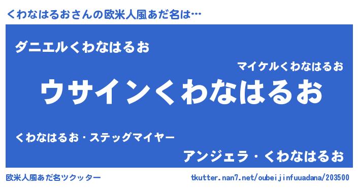 | 男性向けラノベタイトル風あだ名 | 『ダンジョンにくわなはるおを求めるのは間違っているだろうか』 |