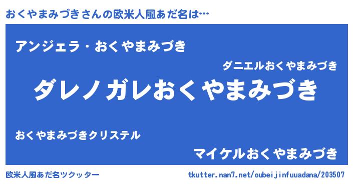 | 男性向けラノベタイトル風あだ名 | 『この素晴らしい世界におくやまみづきを!』 |