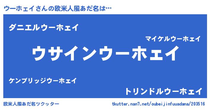 | ポケモン風あだ名 | 『ヒウーホェイ』『ウックウザ』 |