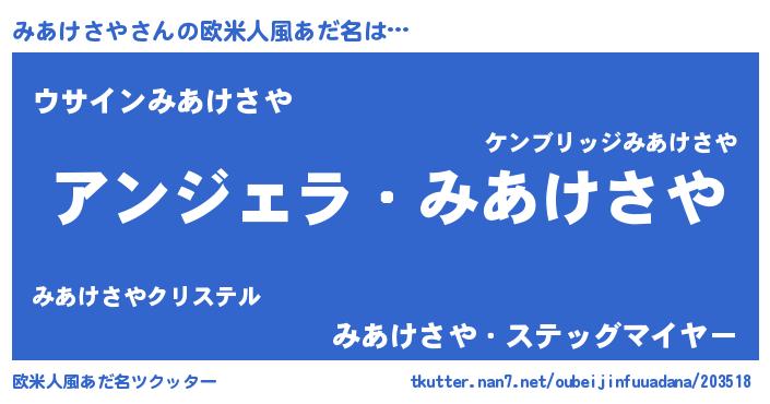 | 胡散臭い通販商品みたいなあだ名 | 『全米が絶賛したサプリメント…その名も「みあけさや」』 |