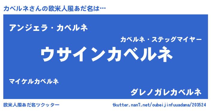 | 男性向けラノベタイトル風あだ名 | 『カベルネの嫁は女の子じゃないと思った?』 |