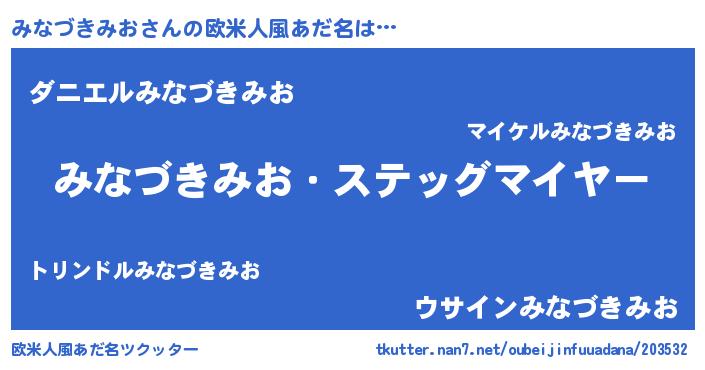 | 男性向けラノベタイトル風あだ名 | 『うちのみなづきみおが世界を掌握している!』 |